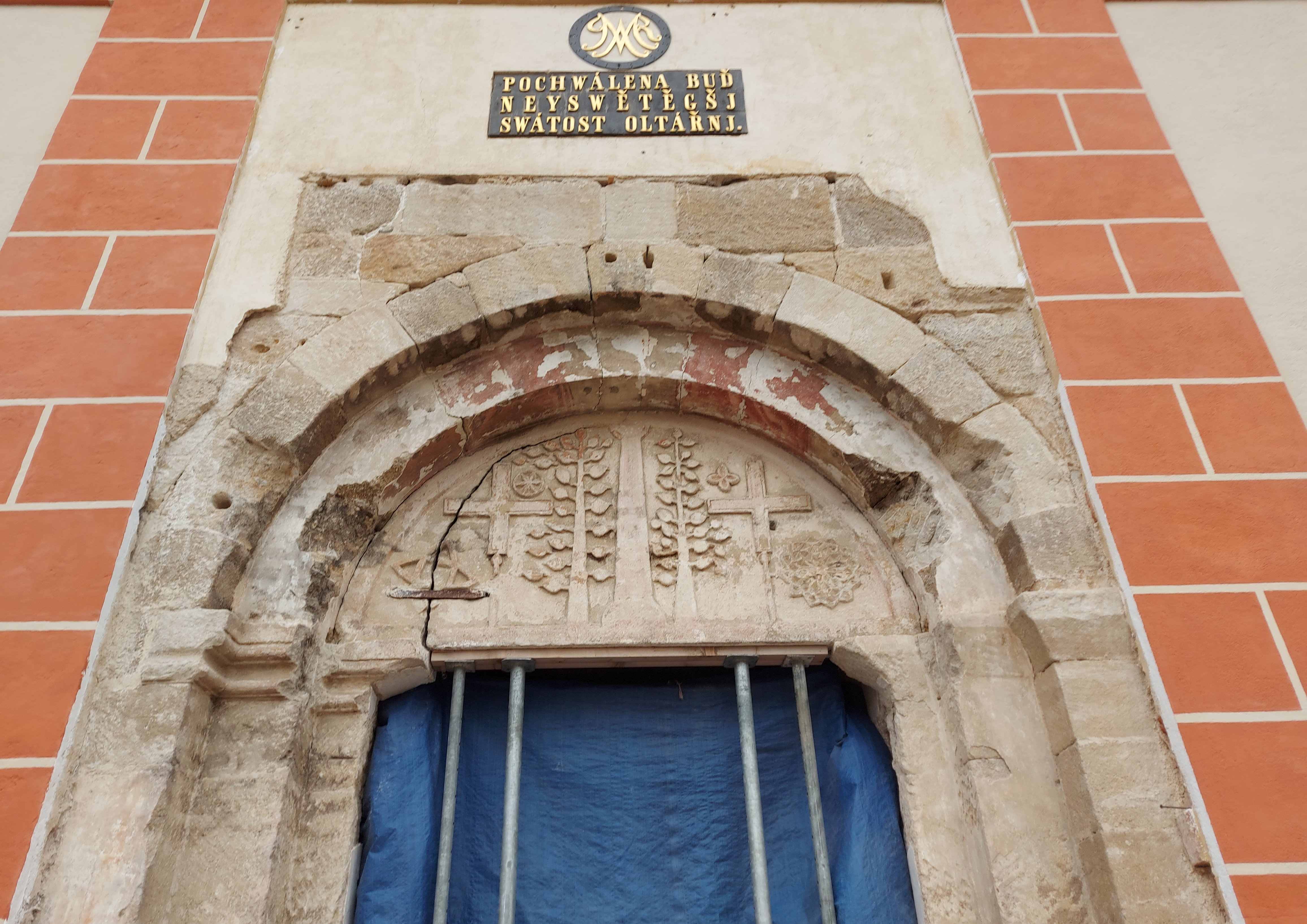 Oprava unikátního románského portálu v Plasích (okres Plzeň-sever)
