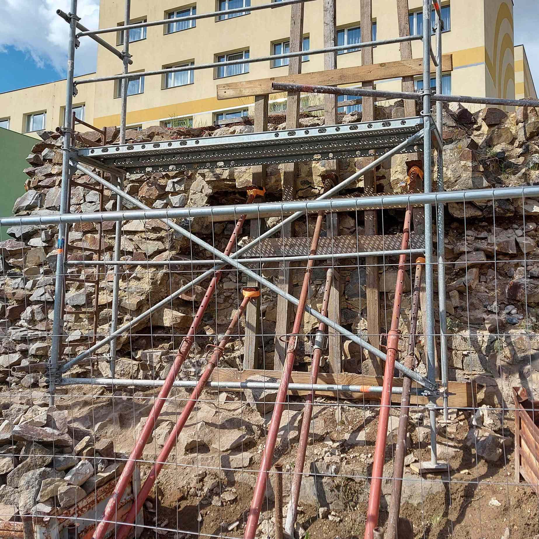 - V rámci statické činnosti bylo provedeno statické zajíštění v rámci opravy porušených hradeb.